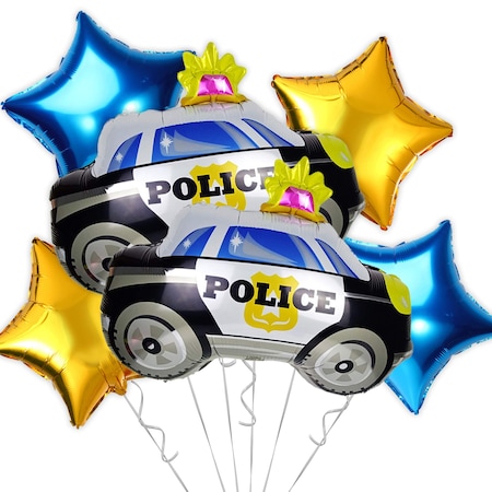 Set 6 baloane masina politie, 65 x 45 cm, albastru / auriu, It’s Party TimeSetul contine:2 baloane din folie figurina masina de politie, 65*45 cm;4 baloane din folie in forma de stea, culori albastru si auriu, 45 cm;**Setul contine pai pentru umflarea cu usurinta a baloanelor si rabant (rola de legat baloanele 5 metri).* Baloanele se livreaza neumflate.* Pot fi umflate atat cu aer cat si cu heliu.*Va rugam sa umflati cu atentie baloanele si sa evitati umflarea excesiva pentru a preveni spargerea acestora.Baloanele din folie umflate cu heliu se mentin intre 5 – 10 zile, in functie de dimensiunea si forma lor;Cu aer pot sa se mentina umflate chiar si mai multe luni.* Este recomandat ca baloanele sa fie ferite de soare, aer conditionat, ger etc pentru ca se pot sparge sau se pot desumfla mai repede.Se umfla usor cu ajutorul paiului din pachet sau cu ajutorul unei pompe manuale, iar pentru a crea un decor ca cel din imagini se pot umfla cu heliu.